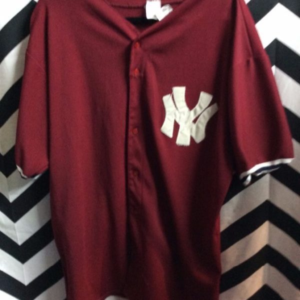 Retro baseball jersey, short sleeve button-up, NY Yankees with front chest logo, MLB, burgundy/white, size XL