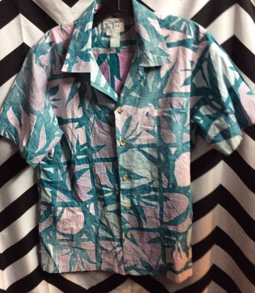 HAWAIIAN SHIRT W/TROPICAL PLANT DESIGN – REVERSED FABRIC