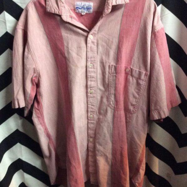 Shirt, cotton, short sleeves, button-up, striped design, made in India, faded red/white, size L