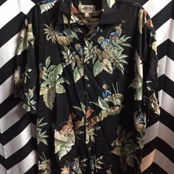 HAWAIIAN SHIRT, SHORT SLEEVES, BUTTON-UP, TIKI & FLORAL PRINT