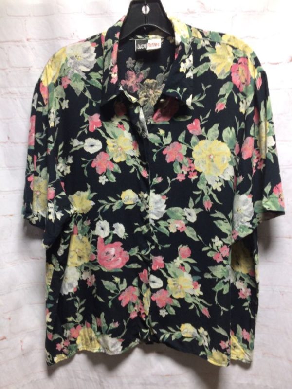 1990’S RAYON W/ PASTEL COLORED FLORAL PRINTED BLOUSE