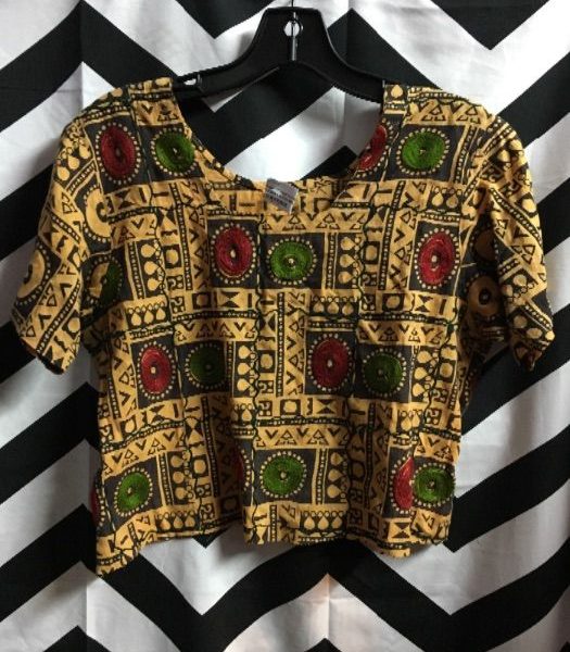 SS cropped ETHNIC PRINT TOP W/ EMBROIDERY