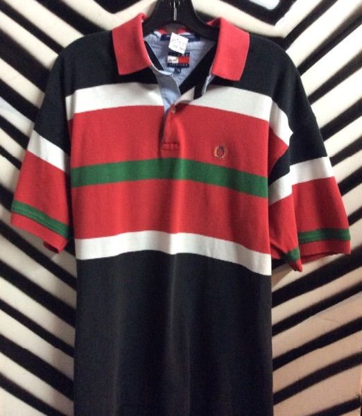 TOMMY HILFIGER POLO SHIRT W/HORIZONTAL STRIPES RED/NAVY/GREEN/WHITE