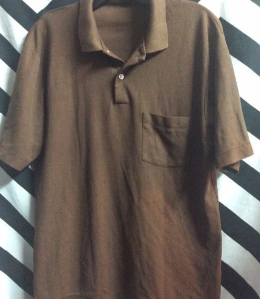 Retro polo T-shirt, short sleeves, button-up neck, pocket, brown, size M