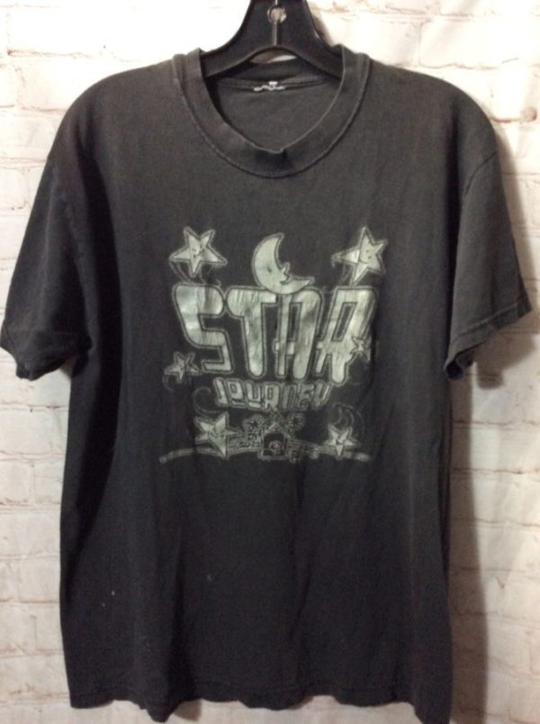 T-shirt, Star Journey, screen printed front graphic, faded, black/white, size M