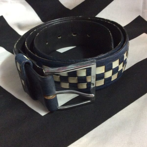 STEER HIDE LEATHER W/WOVEN CHECKER PATTERN BELT