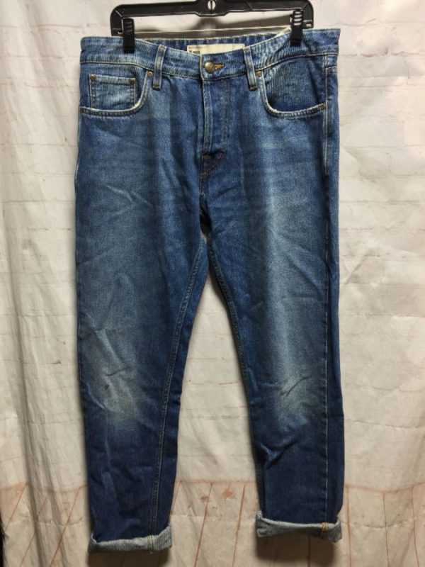 DEUS EX MACHINA DENIM JEANS, ZIP-UP, STRAIGHT FIT, NWT, MEDIUM BLUE, SIZE 34W
