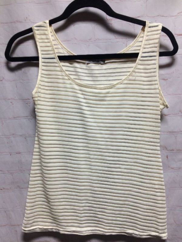 Jendy Paris tank top, solid fabric with horizontal see-thru mesh striped design, creme, size M/L