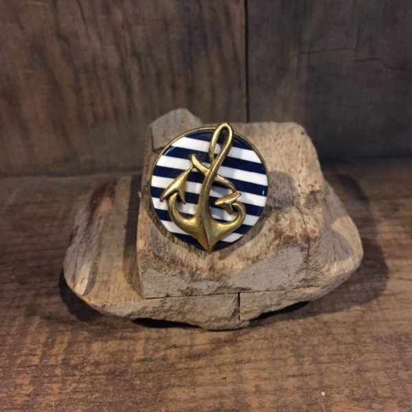 STRIPED BACKGROUND & ANCHOR OVERSIZED BUTTON COCKTAIL RING