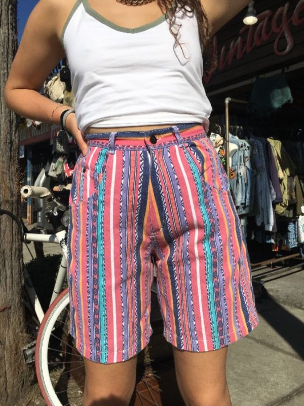 VERTICAL STRIPED PATTERN W/ ETHNIC DESIGN SHORTS