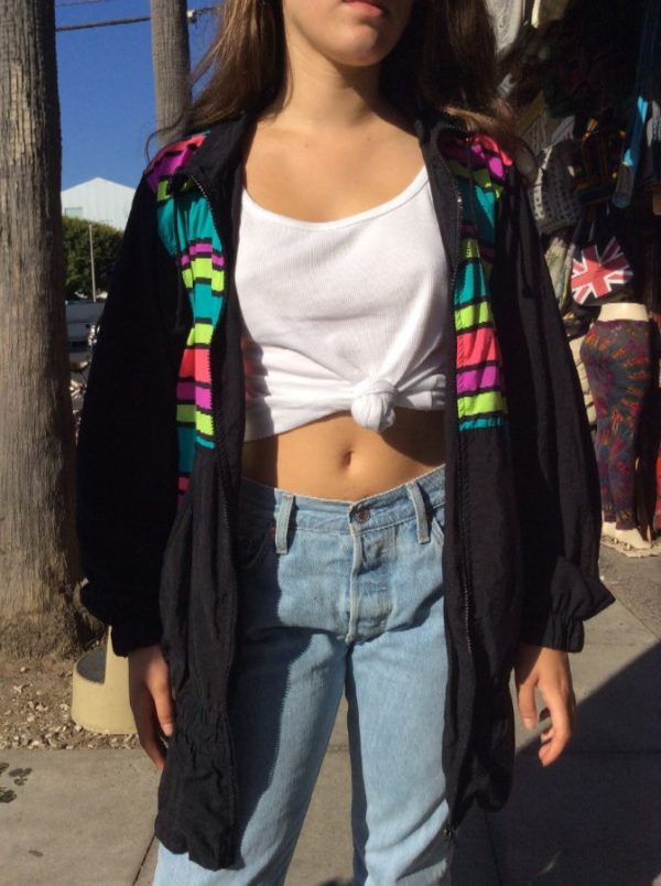 STRIPED NEON PATTERN LONG WINDBREAKER