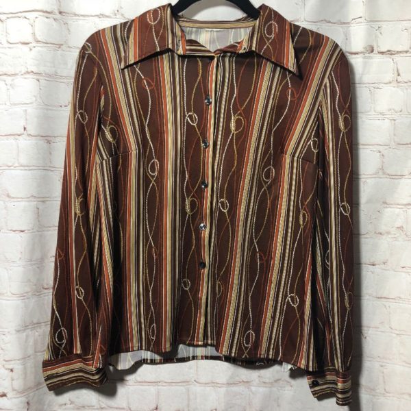 AWESOME 1970S WOVEN CHAIN PRINT LONG SLEEVE BUTTON DOWN DISCO SHIRT