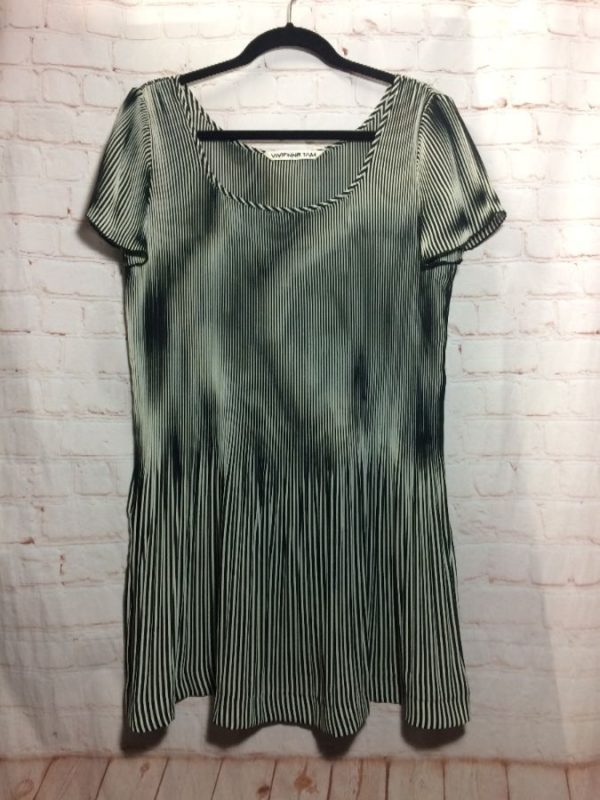1990’s Vivienne Tam dress, mini baby doll style, accordion type pleats, vertical stripes, black/white, size S