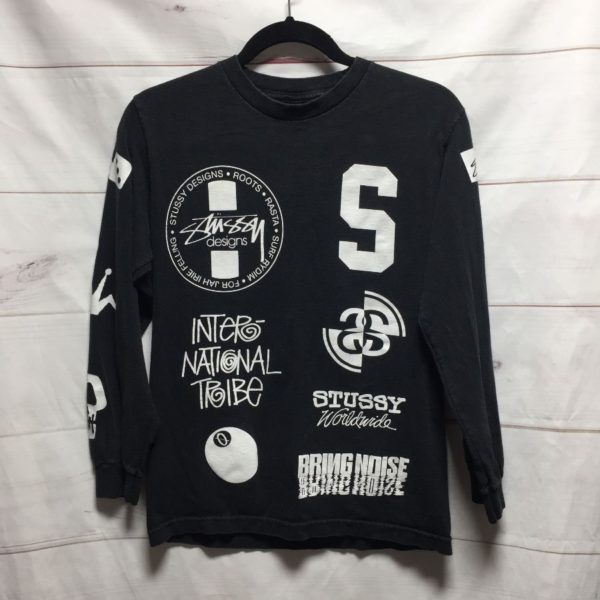STUSSY LONG SLEEVE ALLOVER PRINT COTTON TSHIRT SMALL FIT