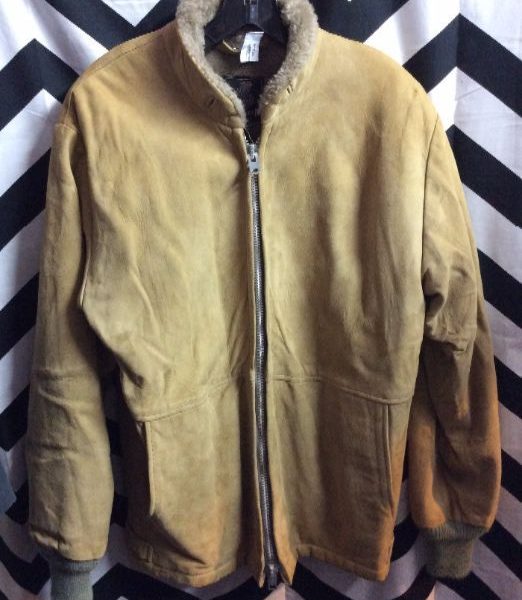1960’S-1970’S JACKET – SUEDE – HEAVY METAL ZIPPER – SHERPA LINING