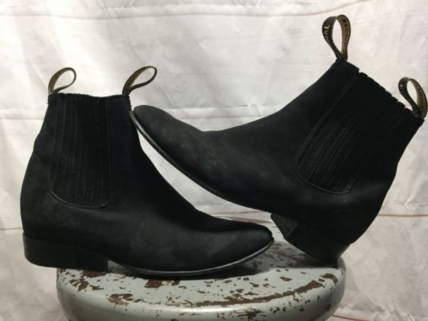 REGIONAL BOOTS, CHELSEA STYLE, SUEDE, SLIGHTLY POINTED, PULL-ON LOOPS, BLACK, SIZE FEM 9/ MEN 7