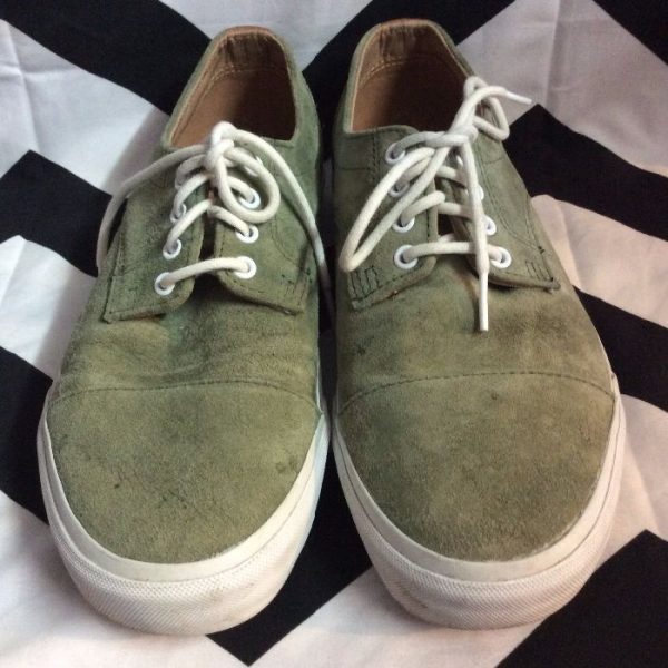 SHOES, VANS, SUEDE, BACK LEATHER TRIM, OLIVE/BROWN, SIZE 7.5