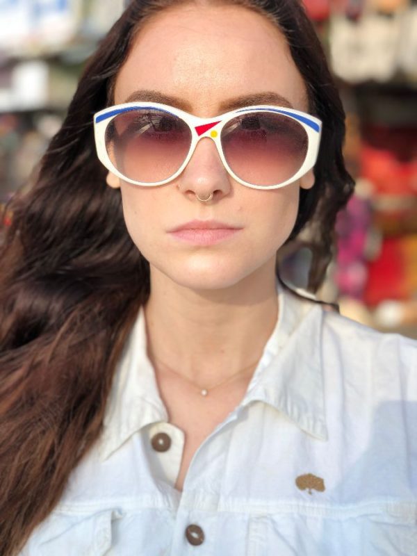 SUNGLASSES 1980’S SHAPE W/ PRINT FRAMES