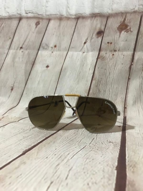 Christine sunglasses, aviator style, wire rims with wire wrapped middle brow piece, gold/silver