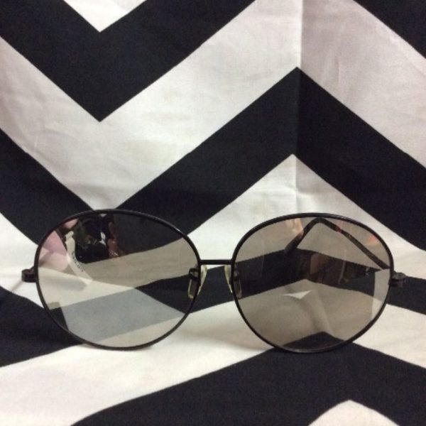 Sunglasses, wire rims, large round mirrored sun spec lenses, black/gray