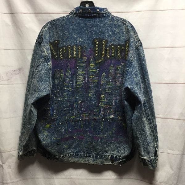 SUPER 80S ACID WASH NEW YORK BEDAZZLED DENIM JACKET