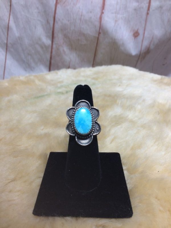 TURQUOISE OVAL STONE W/ FLOWER PETAL DESIGN STERLING SILVER 925 MOUNTING RING