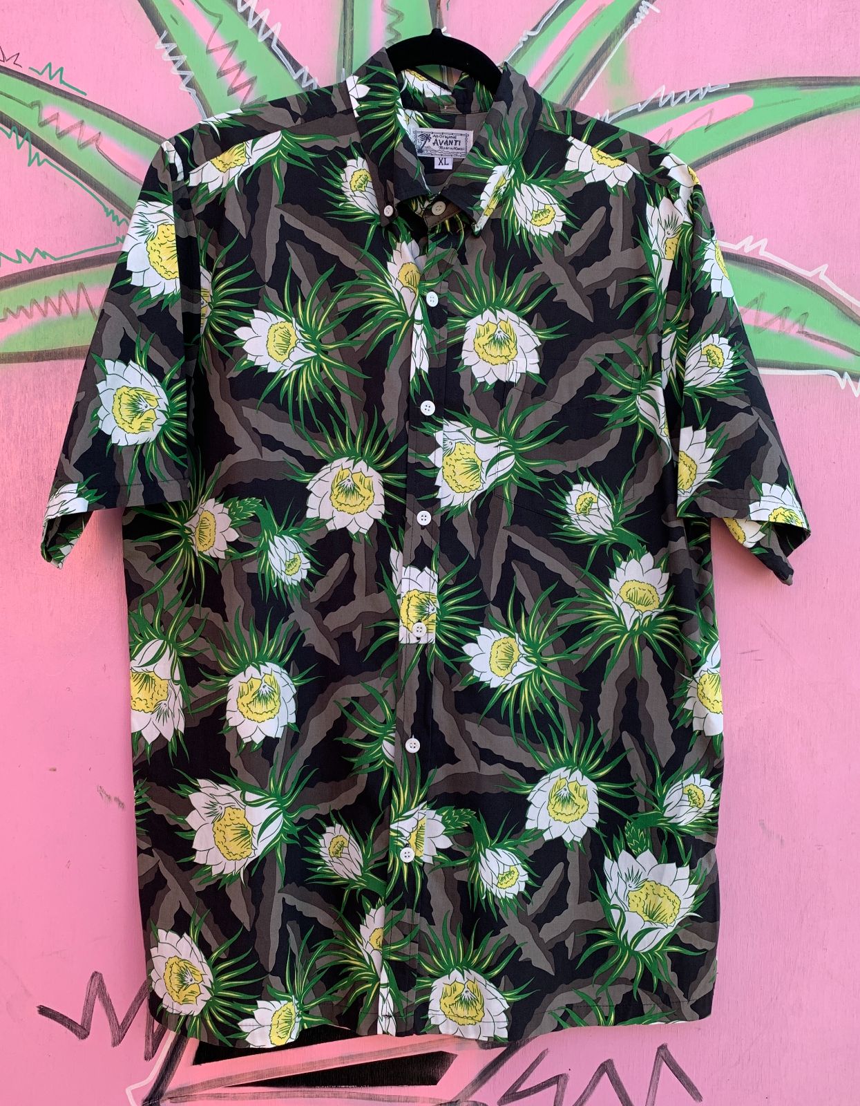 AS-IS AWESOME FLORAL PRINT HAWAIIAN SHIRT W/ WOODEN BUTTONS