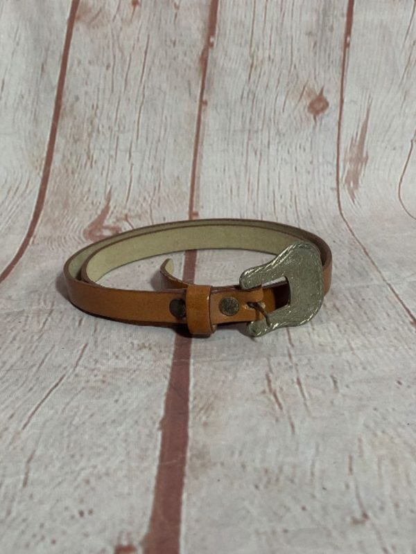 SUPER THIN LEATHER BELT W/ SILVER DETAILED HARDWARE BUCKLE