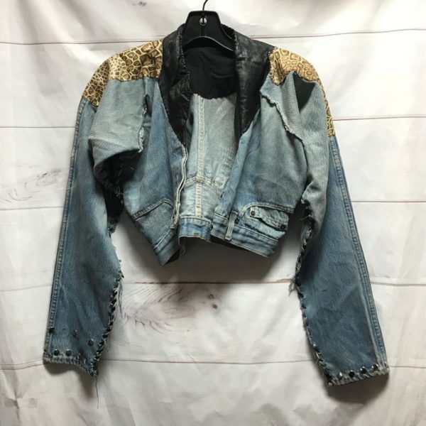 SUPER RAD 1980\\S DENIM UPSIDEDOWN PANTS LEATHER PATCHWORK CROPPED DENIM JACKET