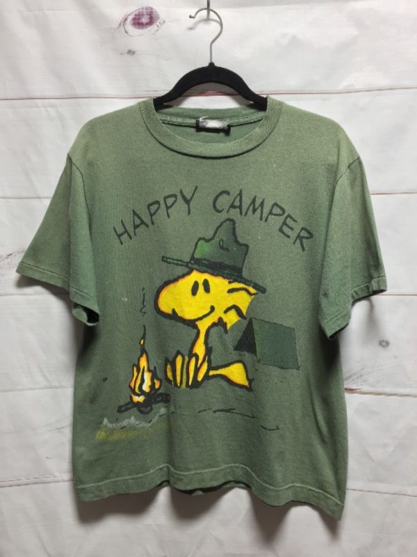 SUPER RETRO WOODSTOCK HAPPY CAMPER GRAPHIC T – SHIRT – AS IS