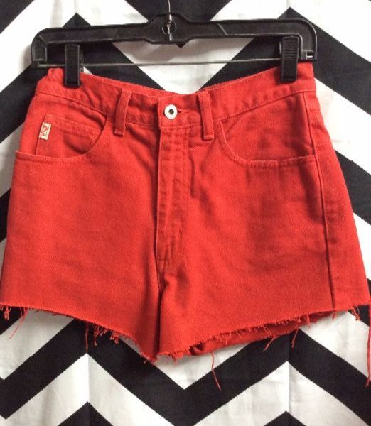 Guess denim shorts, cut-offs, super short, red, size M