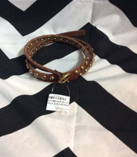 SUPER NARROW LEATHER WAIST BELT GOLD DOUBLE BUCKLE