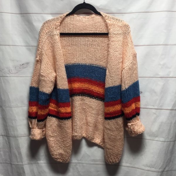 SUPER SOFT 1970S KNITTED CARDIGAN SWEATER RETRO STRIPE DESIGN