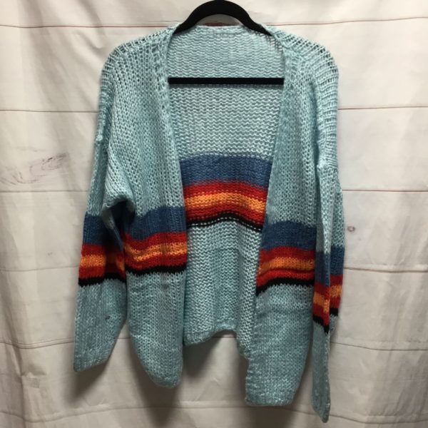 SUPER SOFT 1970S KNITTED CARDIGAN SWEATER RETRO STRIPE DESIGN