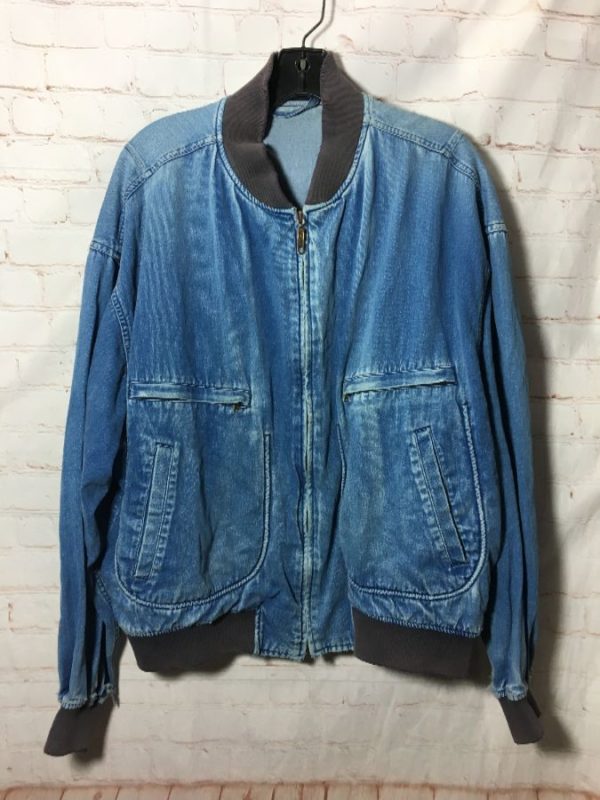 SUPER SOFT CHAMBRAY INDIGO DYED DENIM ZIPUP BOMBER CUT JACKET