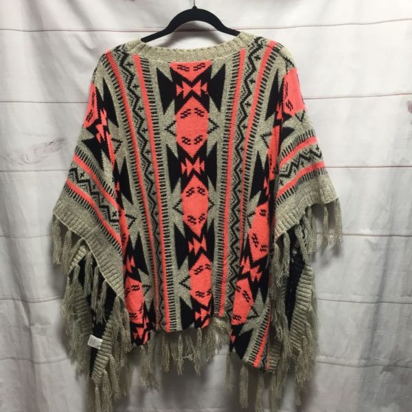 SUPER SOFT NEON TRIBAL PRINT PONCHO WITH DANGLY FRINGE