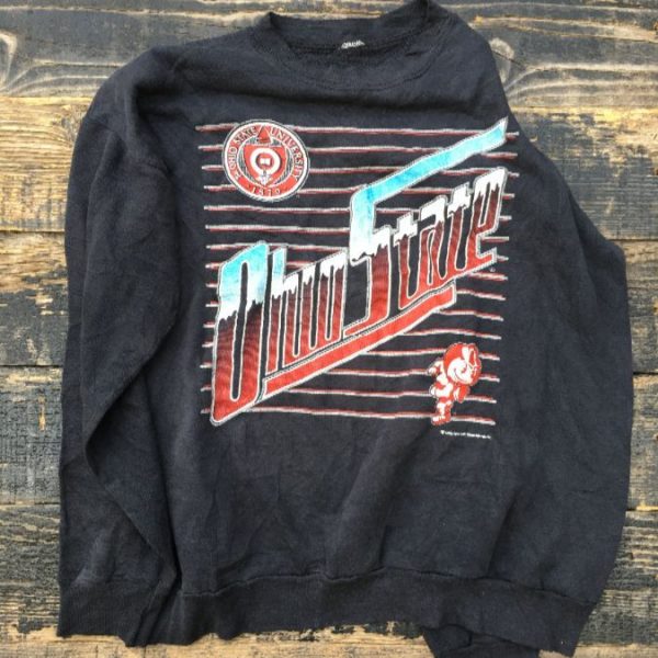 Pullover sweatshirt, Ohio State University Buckeyes, screen printed front design, super soft, super thin & worn to perfection, black/white/red/turq, size L