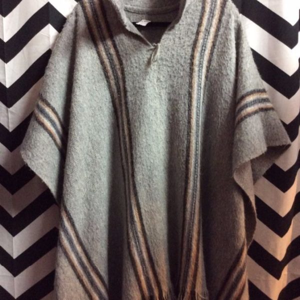 PONCHO, ALPACA WOOL, SUPER SOFT, VERTICAL STRIPE DESIGN, GRAY/BLACK/WHITE