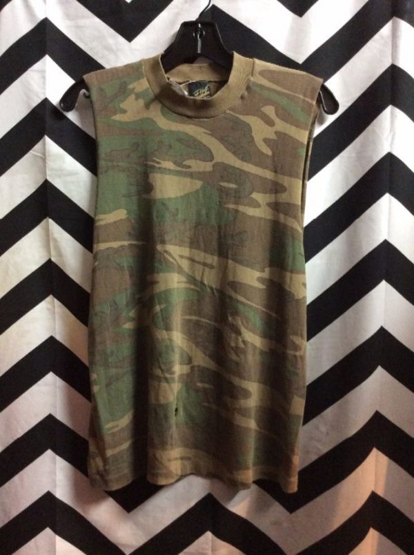 T-SHIRT, CUT SLEEVES, SUPER THIN, CAMO PRINT DESIGN