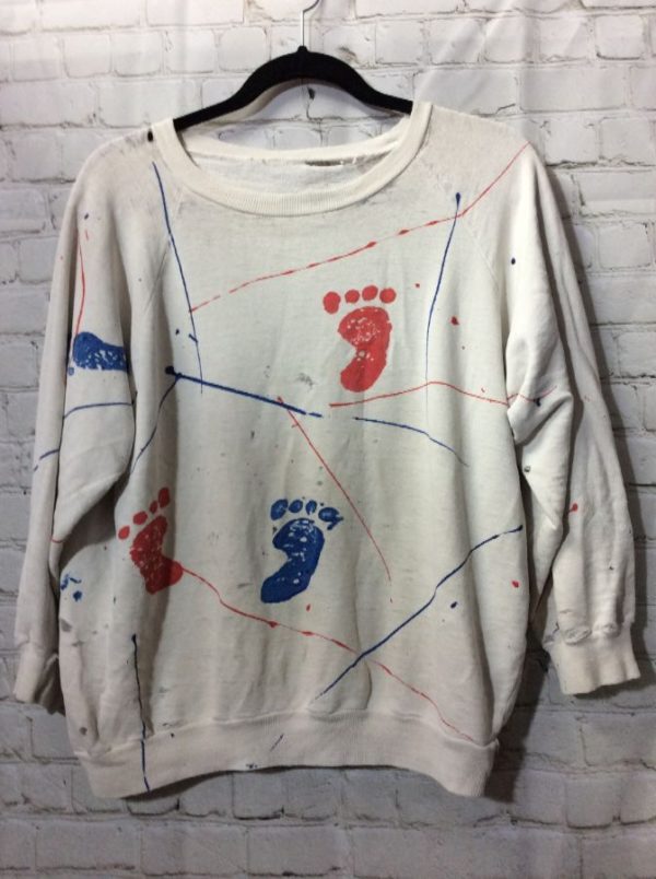 TATTERED SWEATSHIRT W/ SPLATTER PAINT & FEET PRINTS