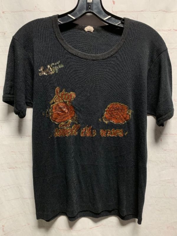 SUPER TRETO VINTAGE STOP & SMELL THE ROSES SHIRT W/ GLITTER TRANSFER DESIGN