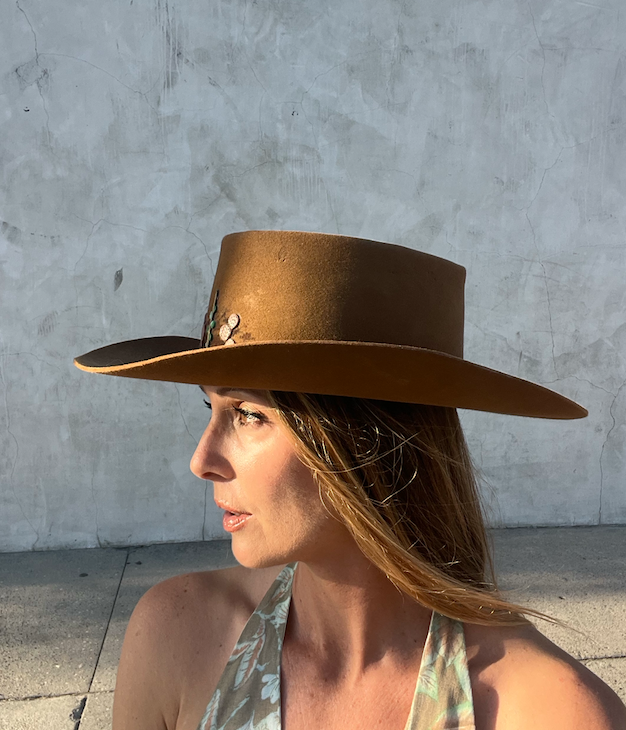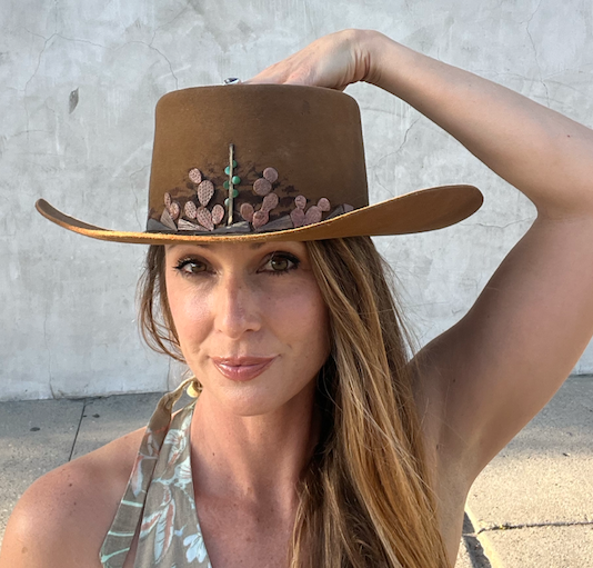 SUPER WIDE BRIMMED STAGECOACH HAT CUSTOM LEATHER CACTUS APPLIQUE