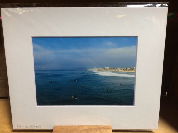 RAY RAE mounted photograph, surfer in open water, local artist, blue/off white/tan, size 5″ x 7″