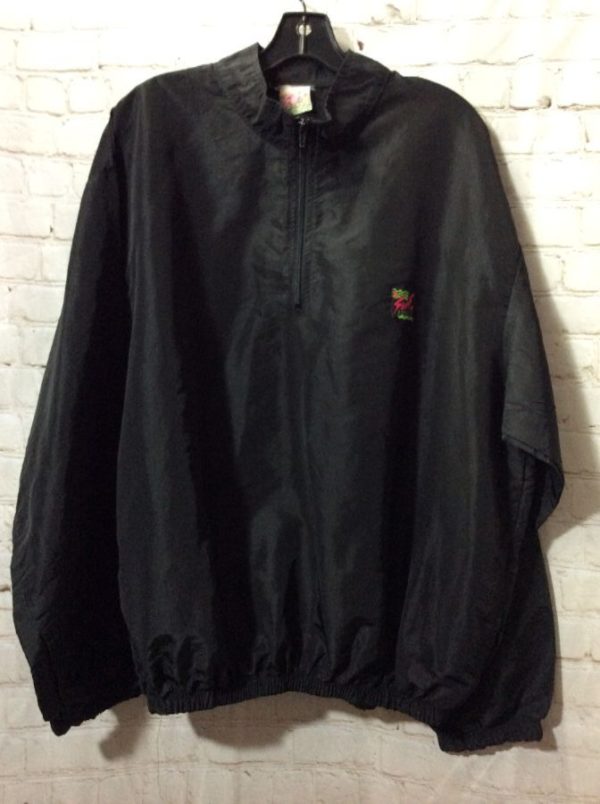 Surf Style windbreaker jacket, pullover, 1/4 zip neck, left chest logo, black, size one size fits all