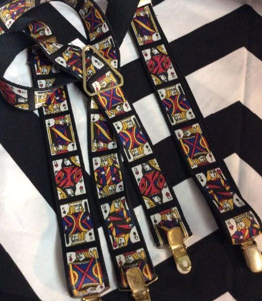 SUSPENDERS W/PLAYING CARD PRINT DESIGN