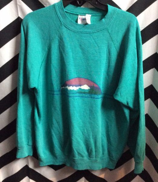 Snowy Mountain – Vail, Colorado pullover sweatshirt, screen printed mountain design full front, green, size L