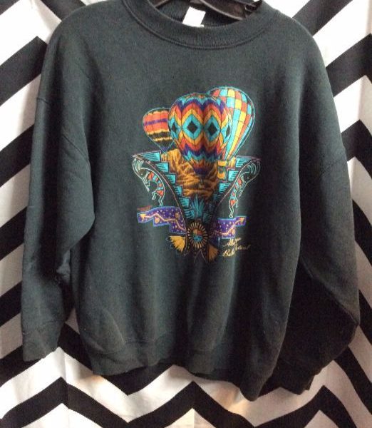 Albuquerque Balloon Fest pullover sweatshirt, screen printed design full front, black/multi-color, size L