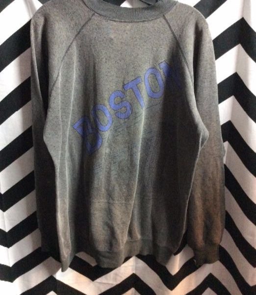Boston pullover sweatshirt, screen printed lettering, faded black, size XL