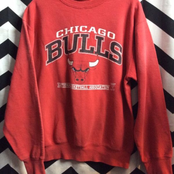Pullover sweatshirt, Chicago Bulls screen printed logo graphic, red/black/white, size XL