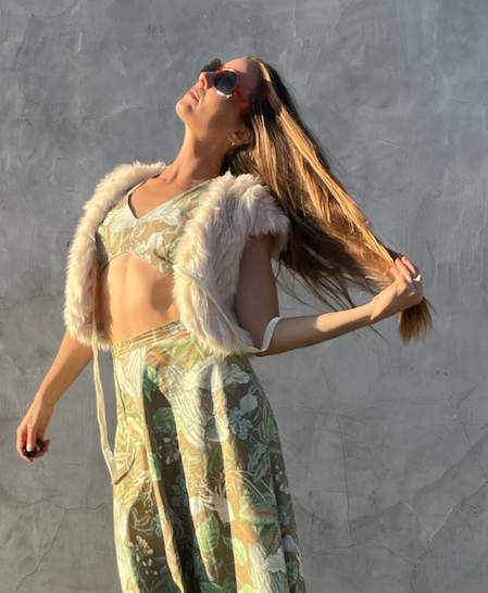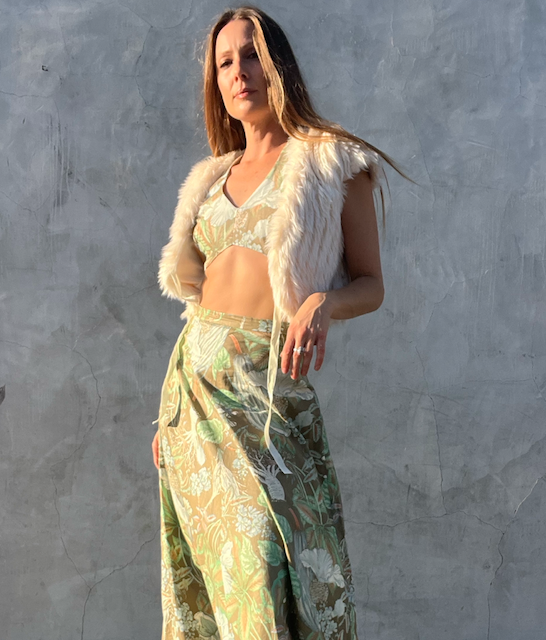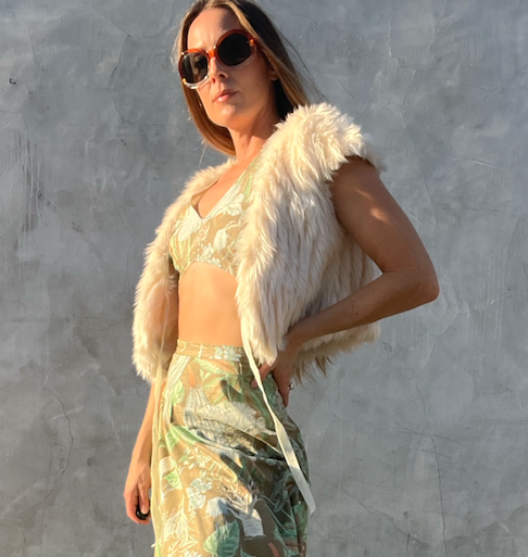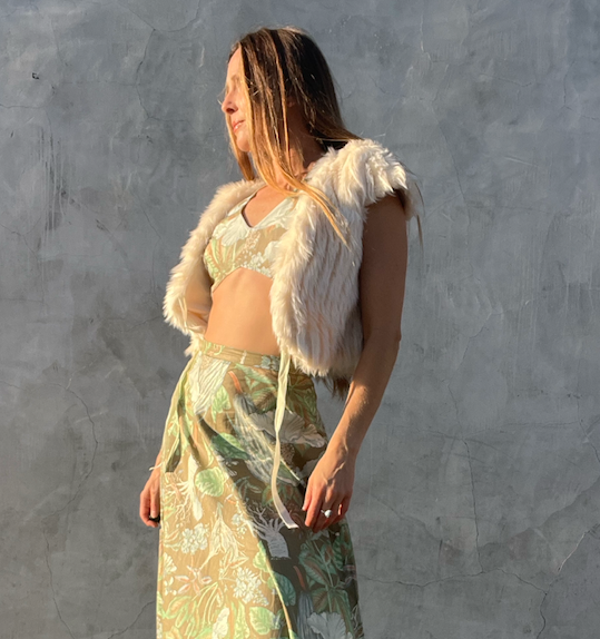 SWEET FAUX FUR CROPPED VEST, RIBBON TIE FRONT